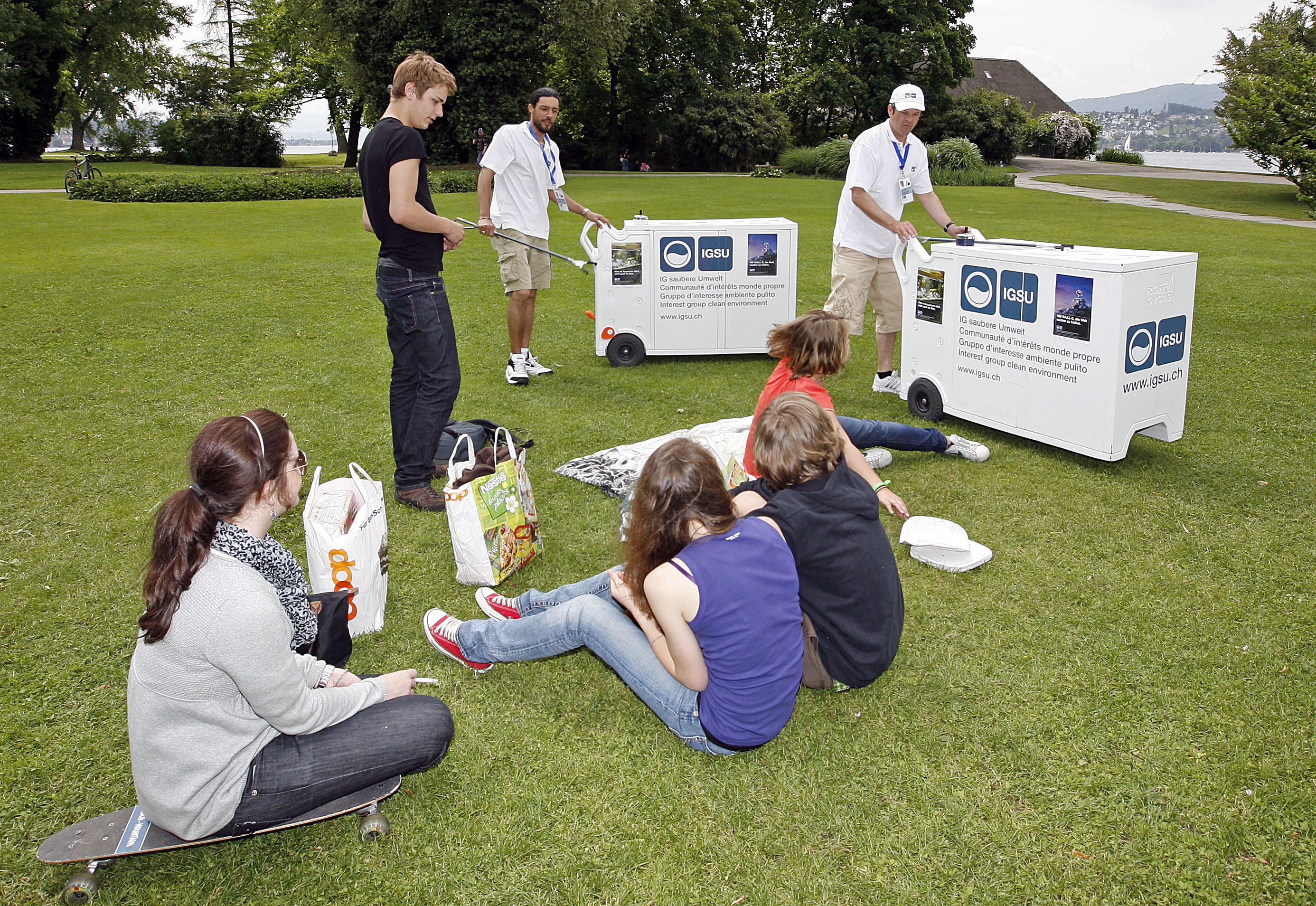 Zürich, 19. April 2011 - Während der sommerlichen Freiluftsaison sind wiederum Umwelt-Botschafter der IG saubere Umwelt IGSU auf Aufklärungstour gegen das Littering, diese grassierende gesellschaftliche Unsitte. Unachtsame Konsumentinnen und Konsumenten werden auf freundliche, witzige und überzeugende Art aufgeklärt und motiviert, ihre Abfälle am richtigen Ort zu entsorgen. Der Saisonstart ist vor Ostern in der Stadt Zürich mit einer Equipe von rund 8 Botschafterinnen und Botschaftern.