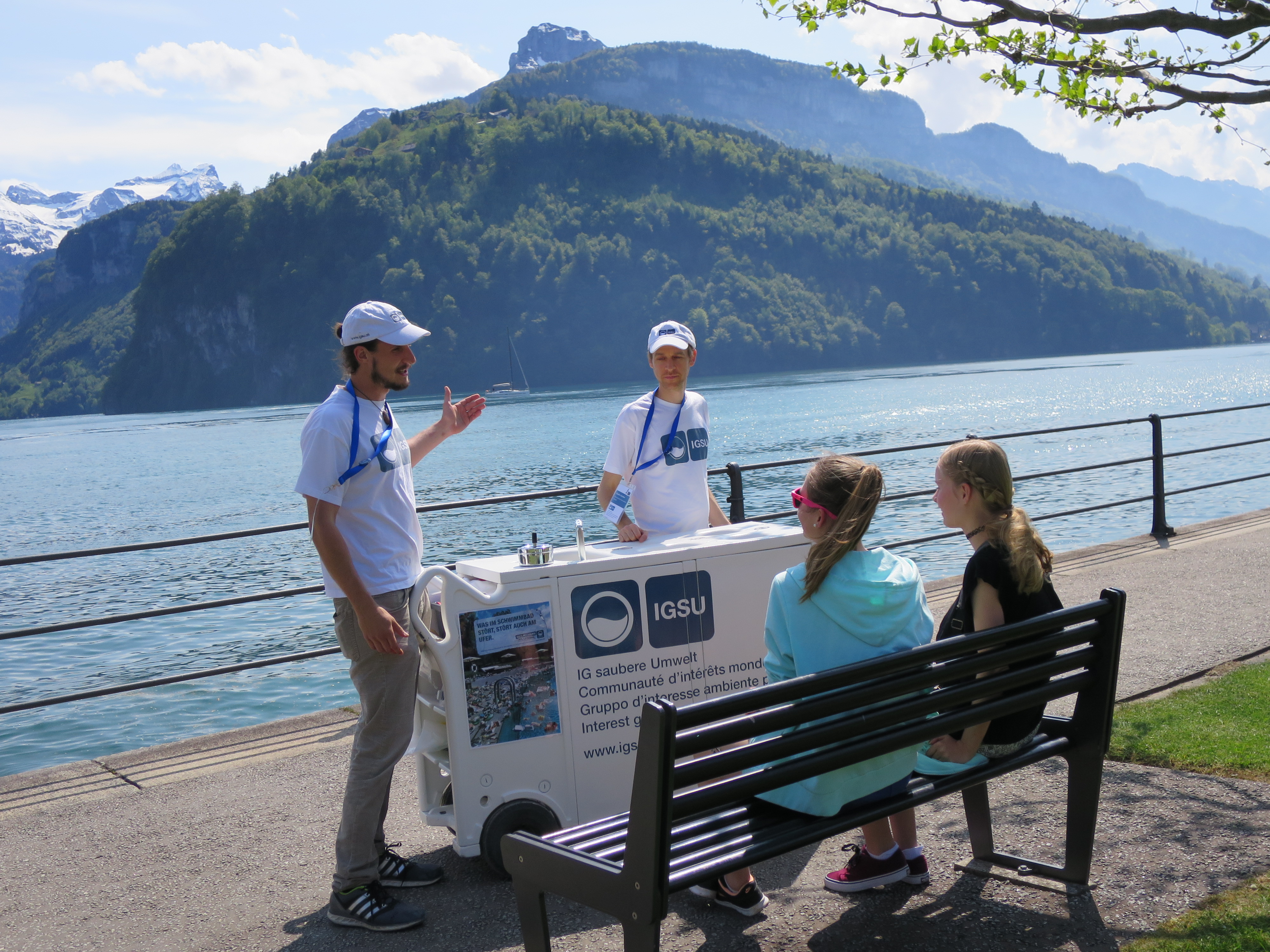 Die IGSU-Botschafter-Teams sind im Laufe des Sommers in allen Landesteilen anzutreffen. Von Ascona über Sion und Neuchâtel bis nach St.Gallen informieren sie über Littering und Recycling und sprechen Spaziergängerinnen und Parkbesucher direkt an, um diese zum korrekten Entsorgen ihrer Abfälle zu ermuntern. Die IGSU-Botschafter sind auch an Schulen aktiv und erklären Schülerinnen und Schülern den korrekten Umgang mit Abfällen und den verschiedenen Wertstoffen. Dabei kommen interaktive Unterlagen zum Einsatz, die bei der IGSU kostenlos angefordert werden können.