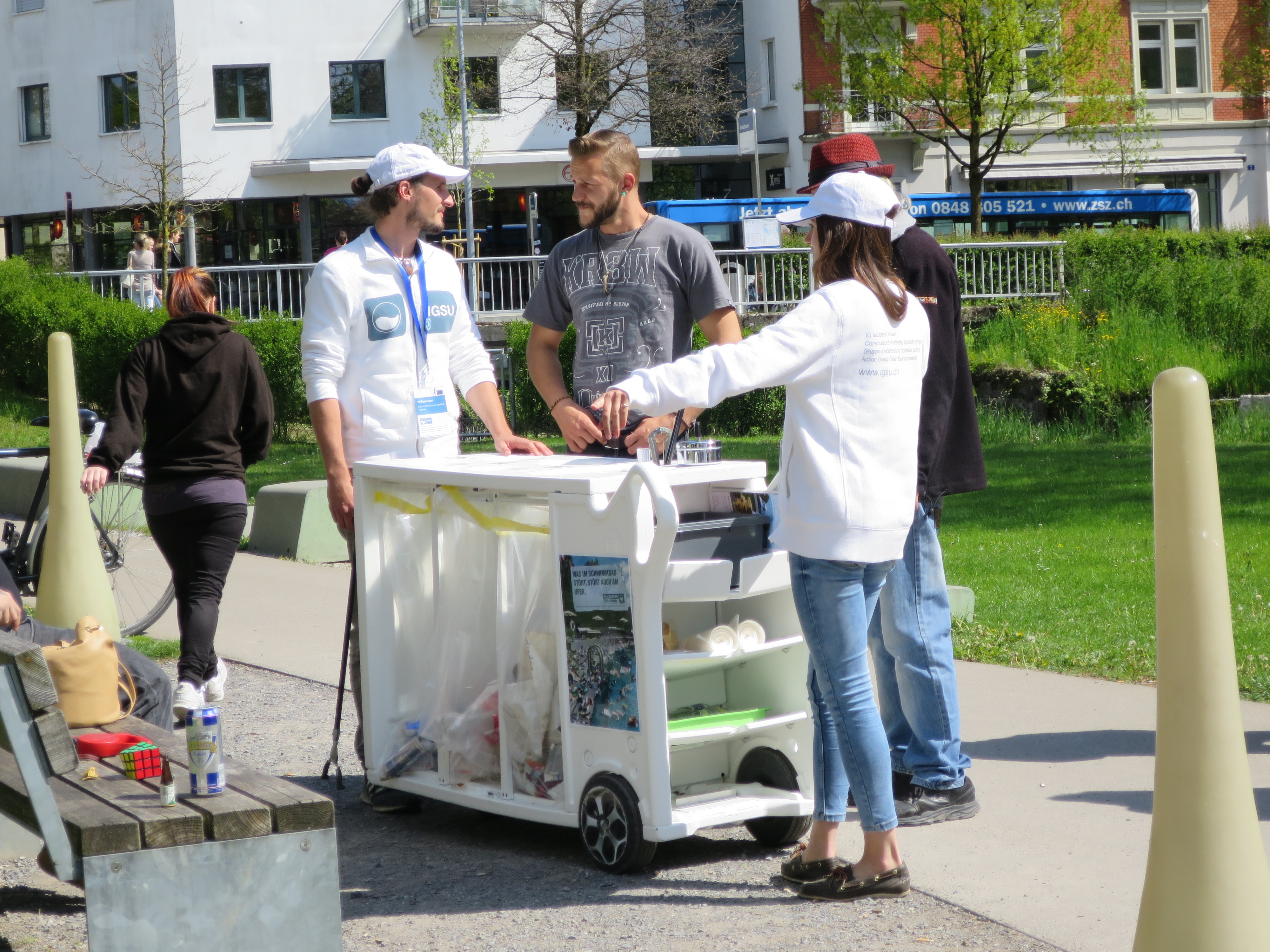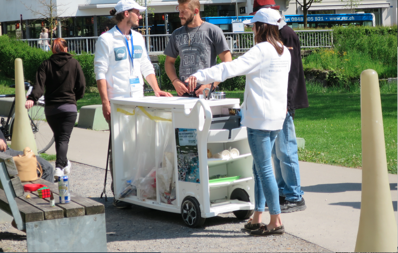 Littering stört nicht nur, es schränkt die Lebensqualität und das Sicherheitsgefühl im öffentlichen Raum ein, hat negative Einflüsse auf das Image einer Stadt oder Gemeinde und kostet schweizweit rund 200 Millionen Franken im Jahr. Um die Bevölkerung für die Littering-Problematik zu sensibilisieren, ziehen IGSU-Botschafter-Teams seit 13 Jahren durch die Schweiz und informieren in über 50 Städten und Gemeinden über Littering und Recycling. Um auch Schülerinnen und Schüler für die Littering-Problematik zu sensibilisieren, führen die IGSU-Botschafter-Teams zudem Workshops und Pausenaktionen an Schulen durch.