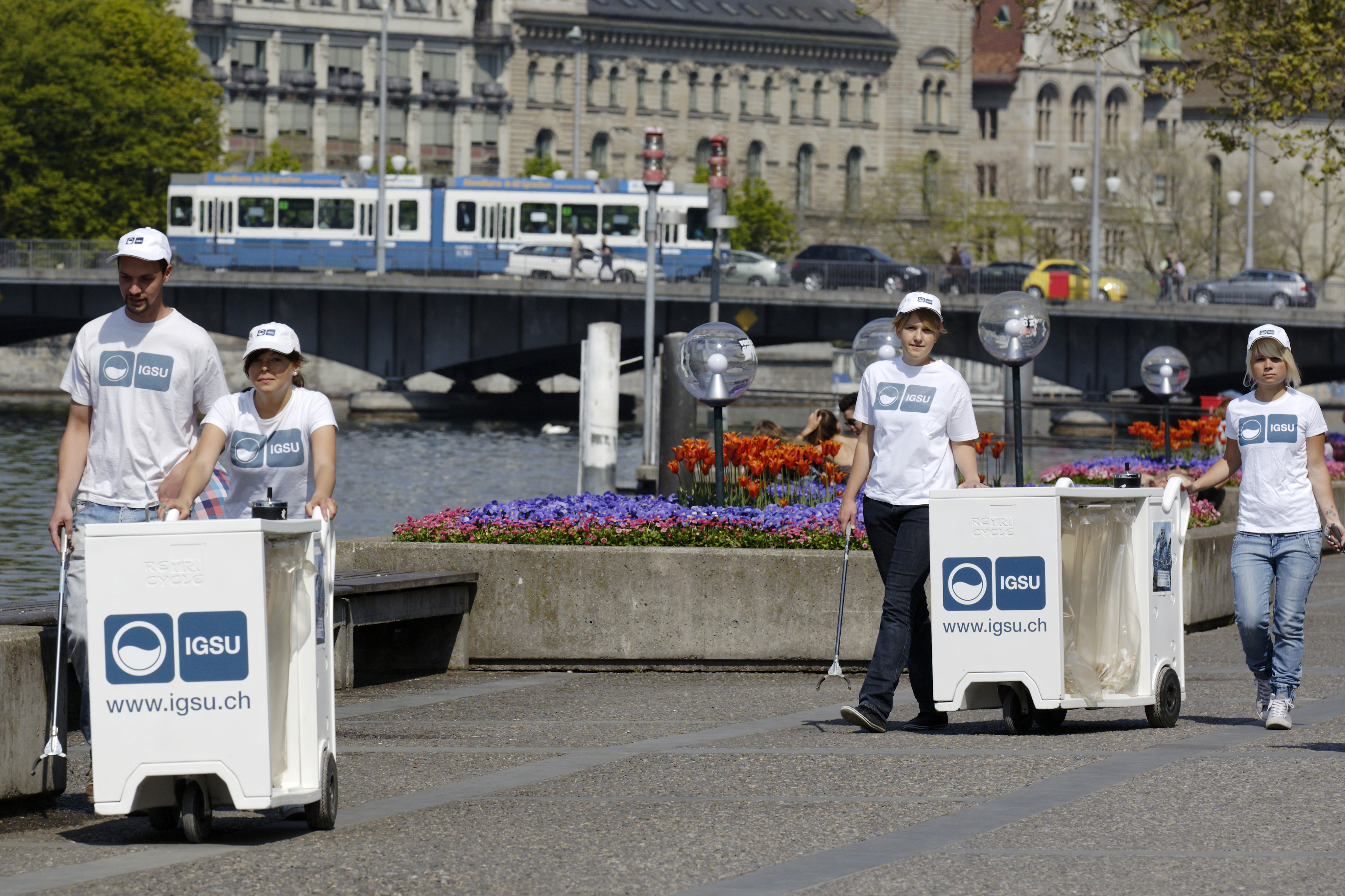 Start der Sensibilisierungstour ist heute in Zürich. Bis Mitte Mai sind die Umwelt-Botschafterinnen und Botschafter an sonnigen Tagen in Zürich unterwegs und setzen sich leidenschaftlich für saubere Plätze, Strassen und Promenaden ein. Erkennbar sind sie an der weissen Kleidung, ihren Recyclingmobilen und ihrer motivierenden Art Passanten anzuregen, ihr eigenes Litteringverhalten zu überdenken. Anzutreffen sind sie in Zürich an Littering Hot Spots rund ums Seebecken – vom Zürihorn über das Bellevue bis nach Wollishofen – am Limmatquai und in der Umgebung des Bahnhofs Stadelhofen.