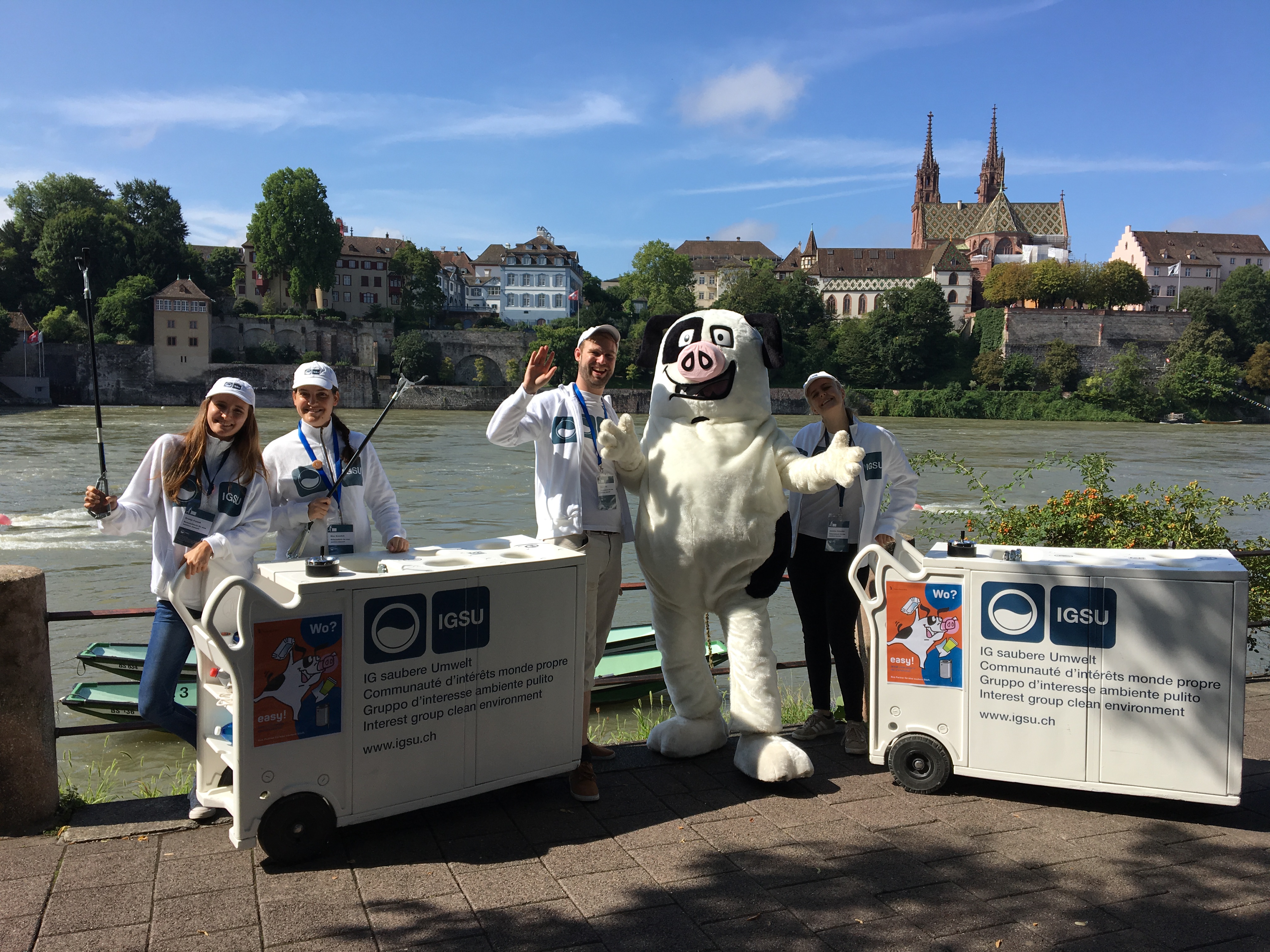 Gemeinsam mit dem «Schweinehund» sensibilisieren die Botschafter-Teams der IG saubere Umwelt (IGSU) auch dieses Jahr die Basler Bevölkerung. Seit heute sind sie unter anderem in Kleinbasel anzutreffen, wo sie auf die Littering-Problematik aufmerksam machen und herumliegenden Abfall einsammeln.