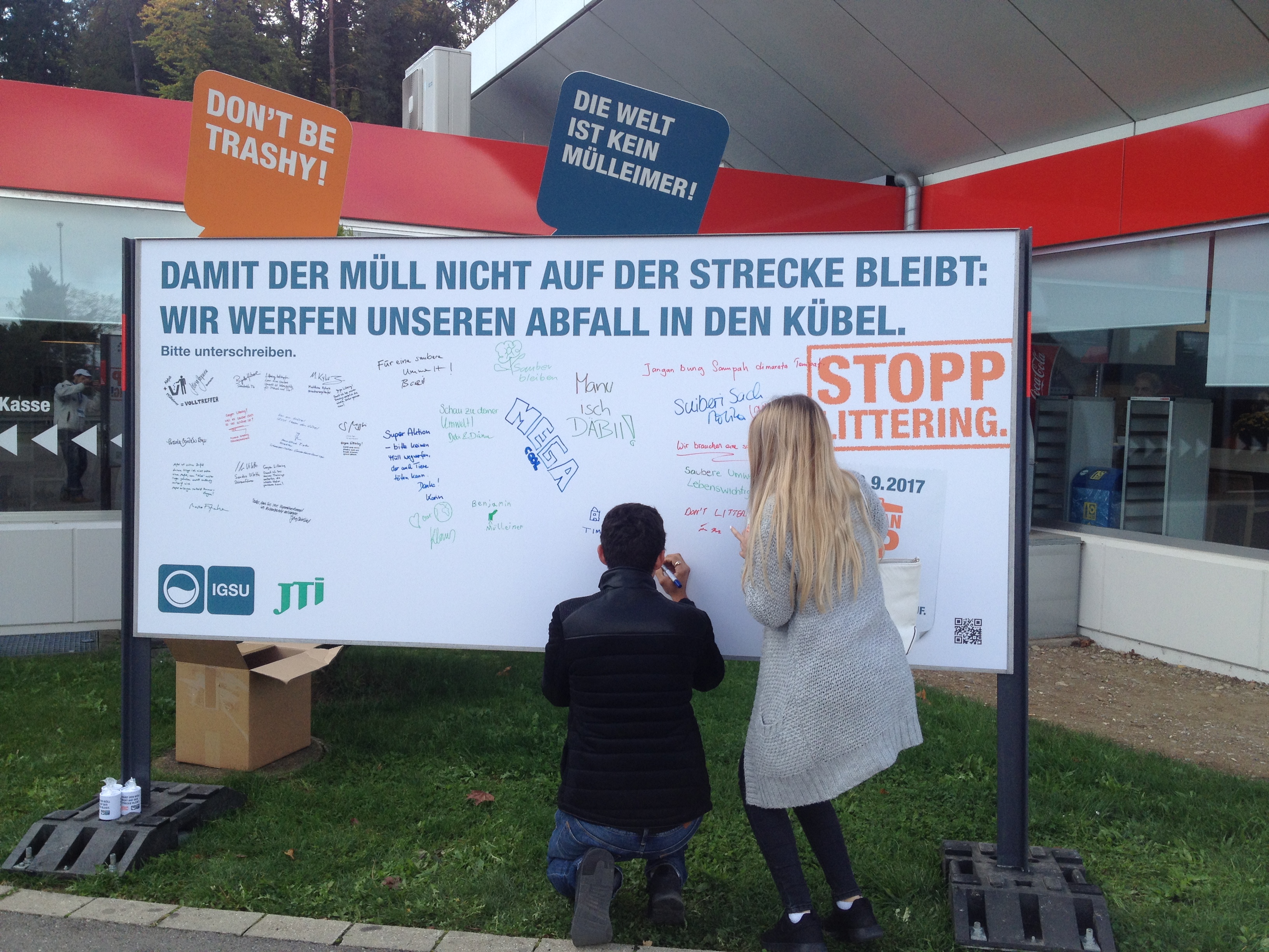 Die IGSU-Botschafter-Teams ziehen seit 2007 jedes Jahr von April bis September durch über 50 Schweizer Städte und Gemeinden und sprechen mit Passantinnen und Passanten über Littering und Recycling. Mit Workshops und Pausenaktionen werden zudem Schülerinnen und Schüler für die Littering-Problematik sensibilisiert. Als Kompetenzzentrum gegen Littering beschränkt sich die IGSU nicht auf die Botschafter-Einsätze. Unterstützt vom Bundesamt für Umwelt BAFU, dem Schweizerischen Verband Kommunale Infrastruktur SVKI und der Stiftung Pusch organisiert die IGSU jeweils den nationalen Clean-Up-Day, der dieses Jahr am 11. und 12. September stattfinden wird. Ausserdem vergibt die IGSU das No-Littering-Label an Städte, Gemeinden und Schulen, die sich gegen Littering engagieren, und unterstützt Institutionen bei der Umsetzung von Raumpatenschafts-Projekten.