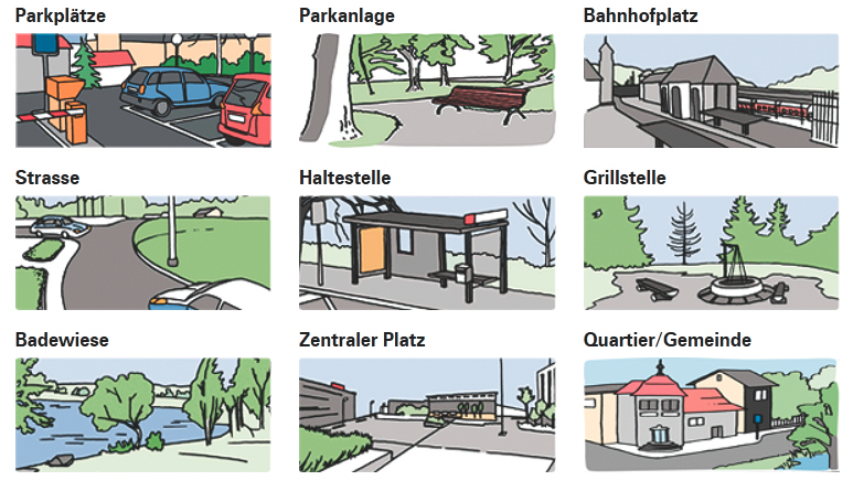 Die Littering-Problematik stellt sich überall sehr unterschiedlich, und Ursachen und Einflussfaktoren sind zahlreich. Patentrezepte gibt es keine - aber idealtypische Situationen zeichnen sich ab. Genau solche Situationen werden in der Toolbox beschrieben: Badiwiesen, Campingplätze, Grillstellen, Bahnhofplätze, dezentrale Parkplätze, Parkanlagen, Strassen etc. Den einzelnen Situationen sind mögliche Ursachen, mögliche Verursacher, mögliche Gegenmassnahmen und dazu dienliche Hilfsmittel zugeordnet. So muss das Rad nicht von jeder zuständigen Behörde neu erfunden werden. Die Toolbox fördert die Vernetzung der von Littering betroffenen Akteurinnen und Akteure und macht schnellere Entscheidungen zu Gegenmassnahmen möglich, weil die Vorschläge erprobt sind und von Erfahrungen anderer profitiert werden kann. Die Navigation im Online-Tool ist intuitiv und einfach, die Texte sind kurz - Informationen sind schnell gefunden.