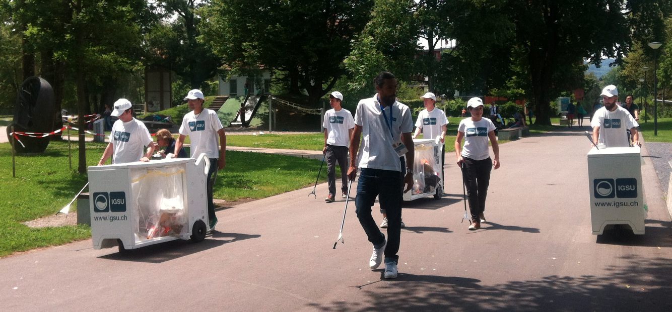 Das IGSU-Botschafter-Team in Uster unterwegs. An zwei Wochenenden, 5. bis 7. Juni und 10. bis 12. Juli 2014, werden unachtsame Unterwegsgeniesser über den richtigen Umgang mit Abfall aufgeklärt.
