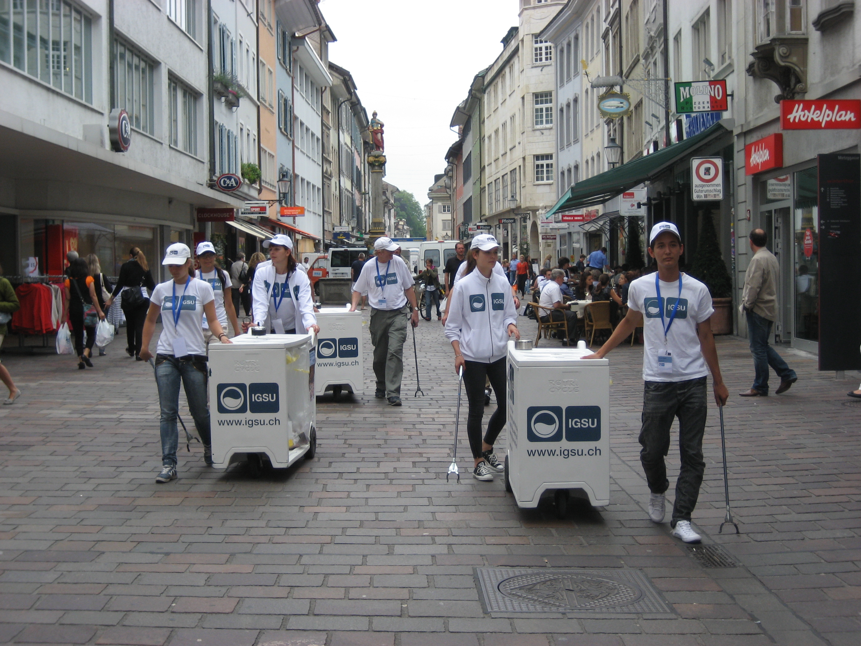 Die IGSU setzt in diesem Sommer insgesamt rund 70 Umwelt-Botschafterinnen und - Botschafter in über 40 Städten und Gemeinden ein. Dabei handelt es sich um junge, motivierte Studenten und Umweltinteressierte, die Passantinnen und Passanten freundlich und humorvoll auf die Littering-Problematik ansprechen.