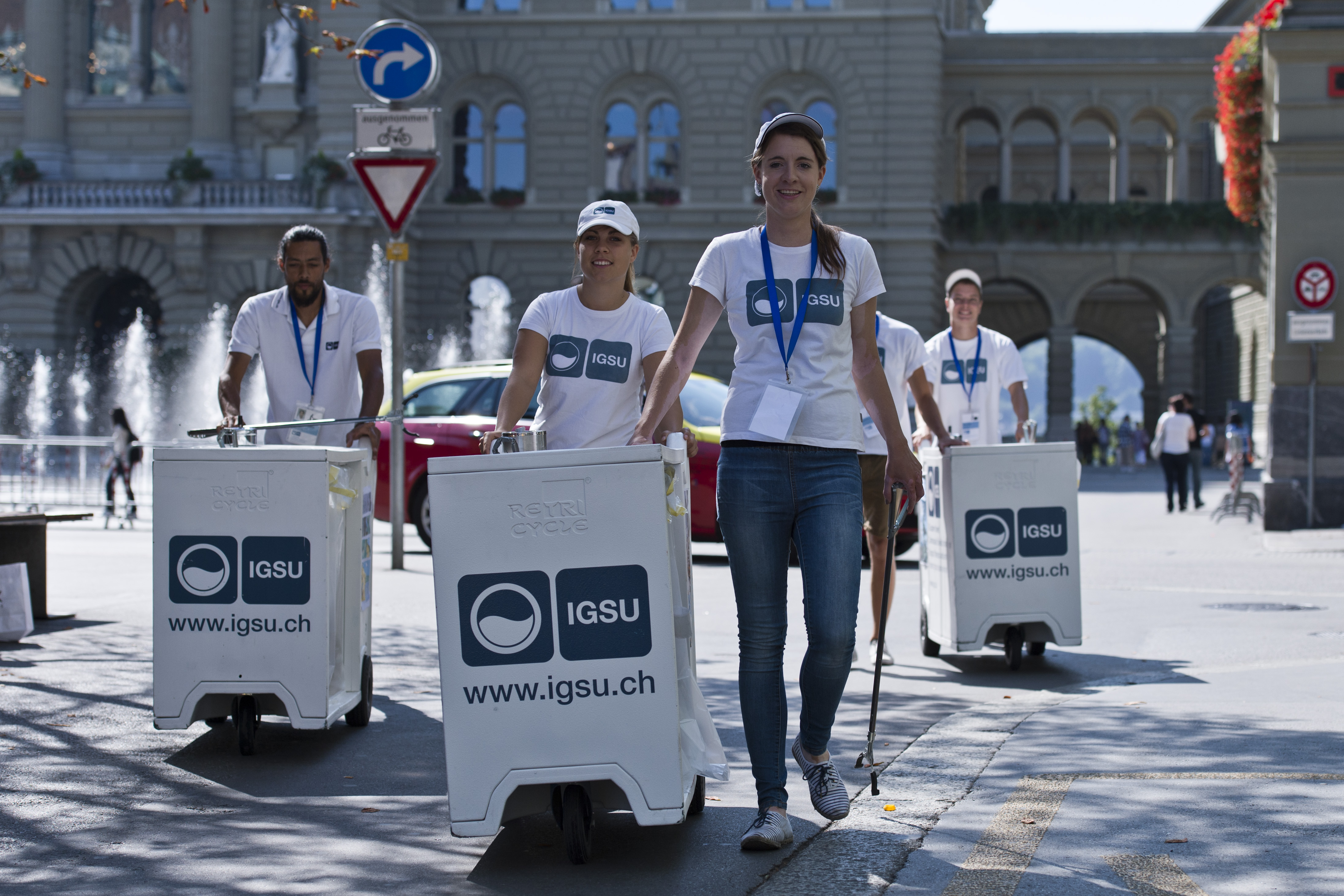Ab morgen Dienstag 19. August sind in Bern wieder die Umwelt-Botschafterinnen und -Botschafter der IG saubere Umwelt (IGSU) unterwegs. Auf charmante und humorvolle Weise sensibilisieren sie Passantinnen und Passanten für das korrekte Entsorgen von Abfällen im öffentlichen Raum. Das Engagement der IGSU erfolgt in Zusammenarbeit mit der Stadt Bern und der Kampagne «Subers Bärn – zäme geits!»