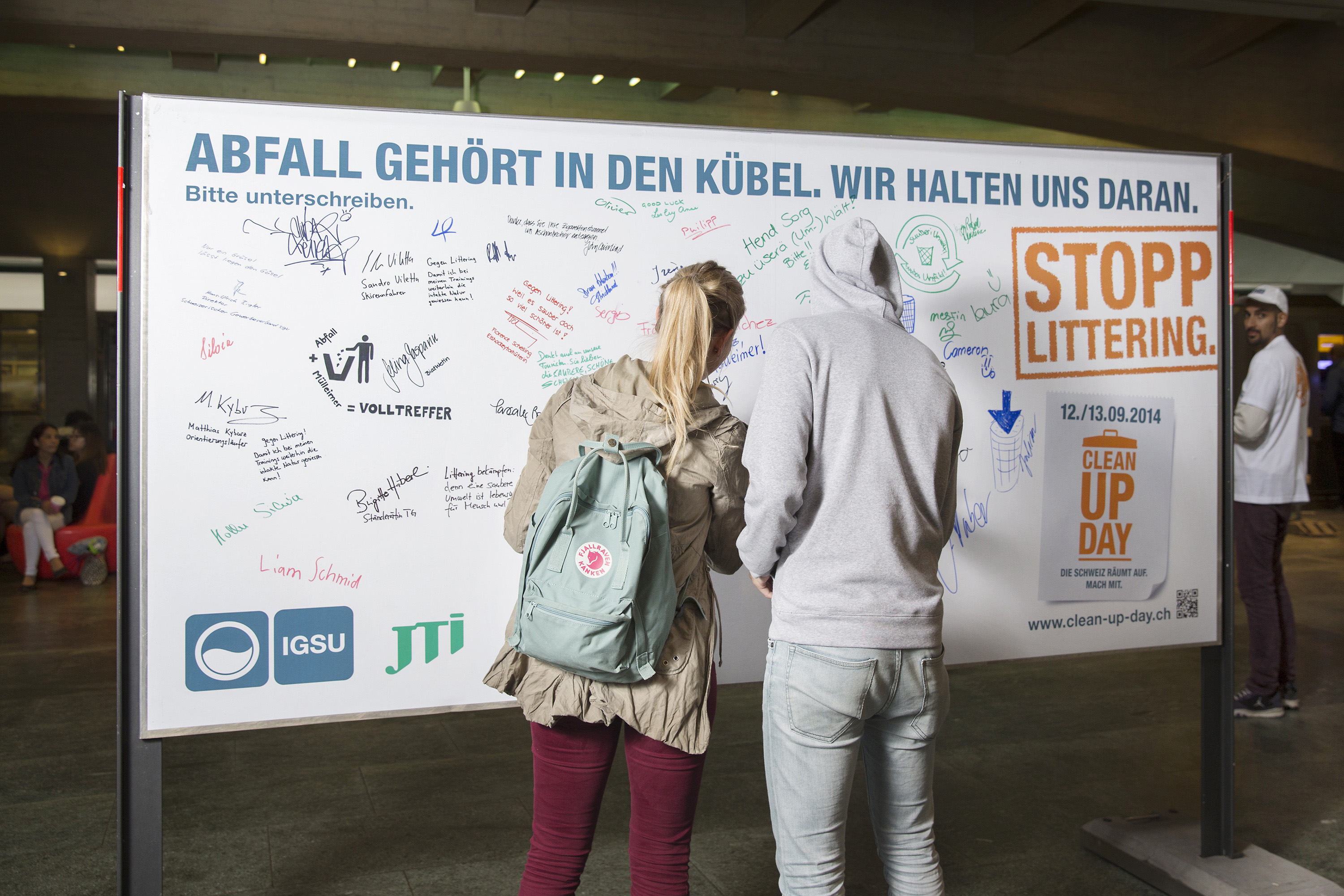 «Viele Menschen fühlen sich dem Fehlverhalten einer Minderheit hilflos ausgesetzt», sagt Nora Steimer, Geschäftsleiterin der IGSU. «Mit Massnahmen wie der Plakataktion zeigen wir, dass jeder etwas gegen Littering tun kann.» Die nächste grosse Möglichkeit, sich gegen Littering zu engagieren, bietet der nationale Clean-Up-Day, in dessen Rahmen die Plakataktion stattfand. Am 12. und 13. September werden wie schon im letzten Jahr Tausende Schweizerinnen und Schweizer öffentliche Plätze, Wiesen und Strassen aufräumen und so ein Zeichen gegen Littering und für eine saubere Schweiz setzen.