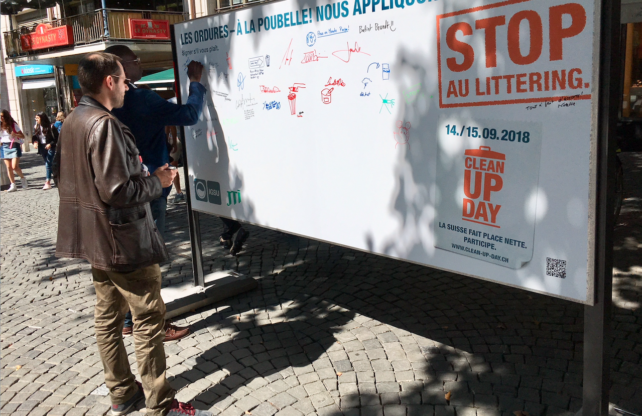 Le littering n’est pas une peccadille. C’est avec cette devise que les équipes d’ambassadeurs d’IGSU (Communauté d’intérêts monde propre) sillonnent cette année la Suisse. Aujourd'hui, ils ont incité les passant(e)s sur la place Saint-François à Lausanne à se prononcer contre le littering et à en exprimer leur opinion sur les affiches blanches. Ces dernières années, ces affiches ont permis de recueillir signatures, poèmes et bandes dessinées dans plusieurs villes. La directrice d’IGSU, Nora Steimer, s’est félicitée de la réussite de cette action: «Les Lausannoises et Lausannois sont très créatifs. Nombreux sont ceux qui ont lancé avec des illustrations impressionnantes et des commentaires pleins d’esprit un appel contre le littering.» L’action par voie d’affiches est soutenue par JTI (Japan Tobacco International).