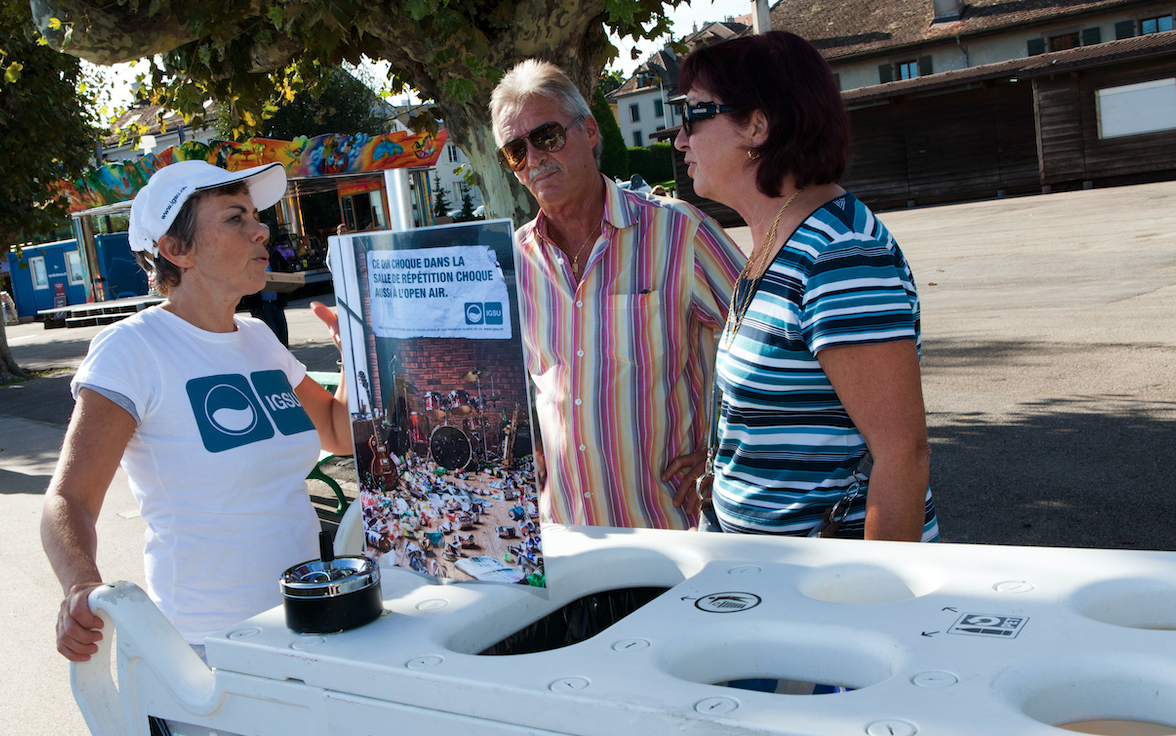 Depuis 2007, les équipes d’ambassadeurs IGSU parcourent chaque année d’avril à septembre plus de 50 villes et communes suisses, où ils abordent les passant(e)s pour leur parler du littering et du recyclage. Les élèves sont également sensibilisés à la problématique du littering grâce à des ateliers et des actions pendant les pauses.
