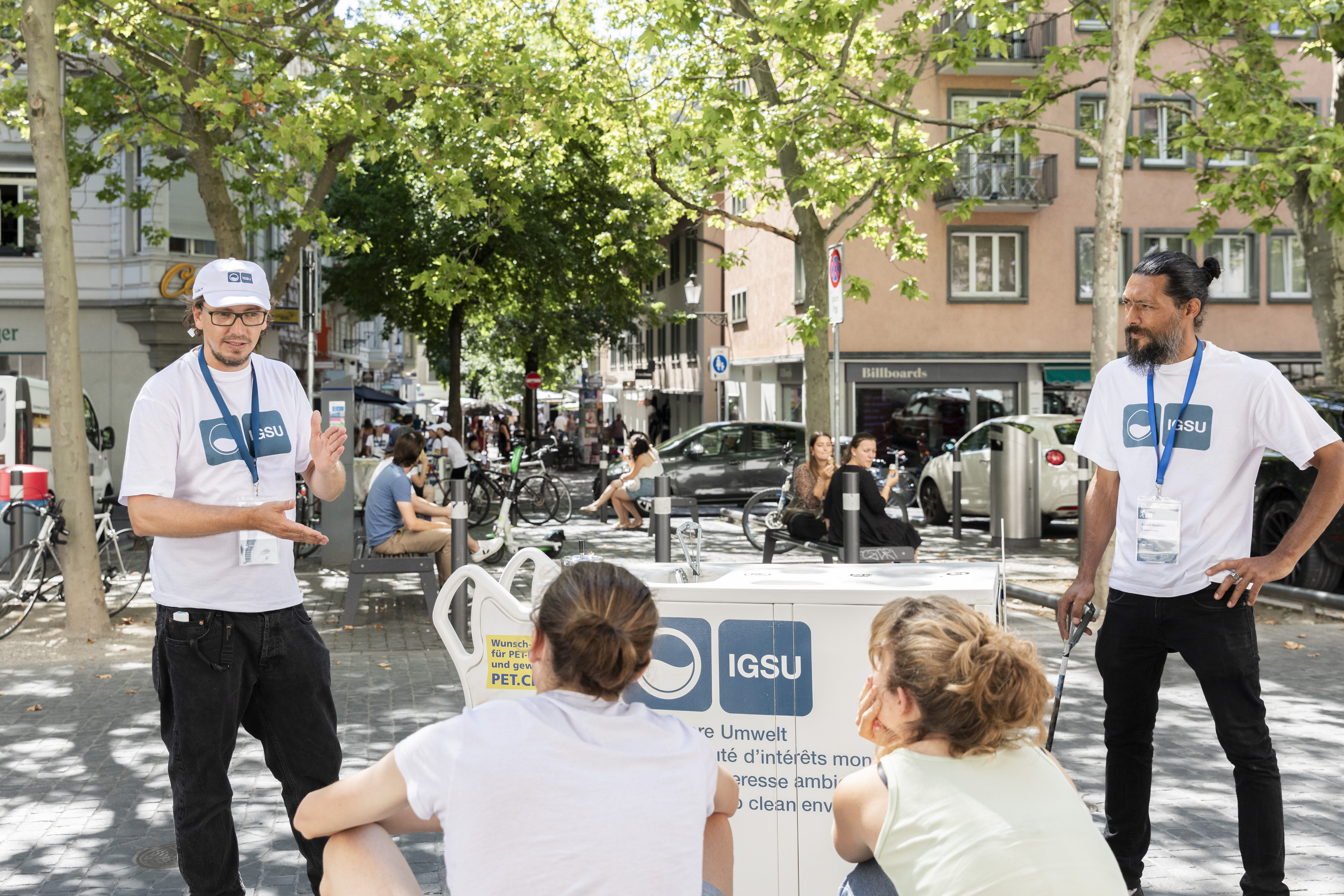 Depuis 2007, les équipes d’ambassadeurs IGSU parcourent chaque année d’avril à septembre plus de 50 villes et communes suisses, où elles abordent les passant(e)s pour leur parler du littering et du recyclage. Les élèves sont également sensibilisés à la problématique du littering grâce à des ateliers et des actions pendant les pauses.