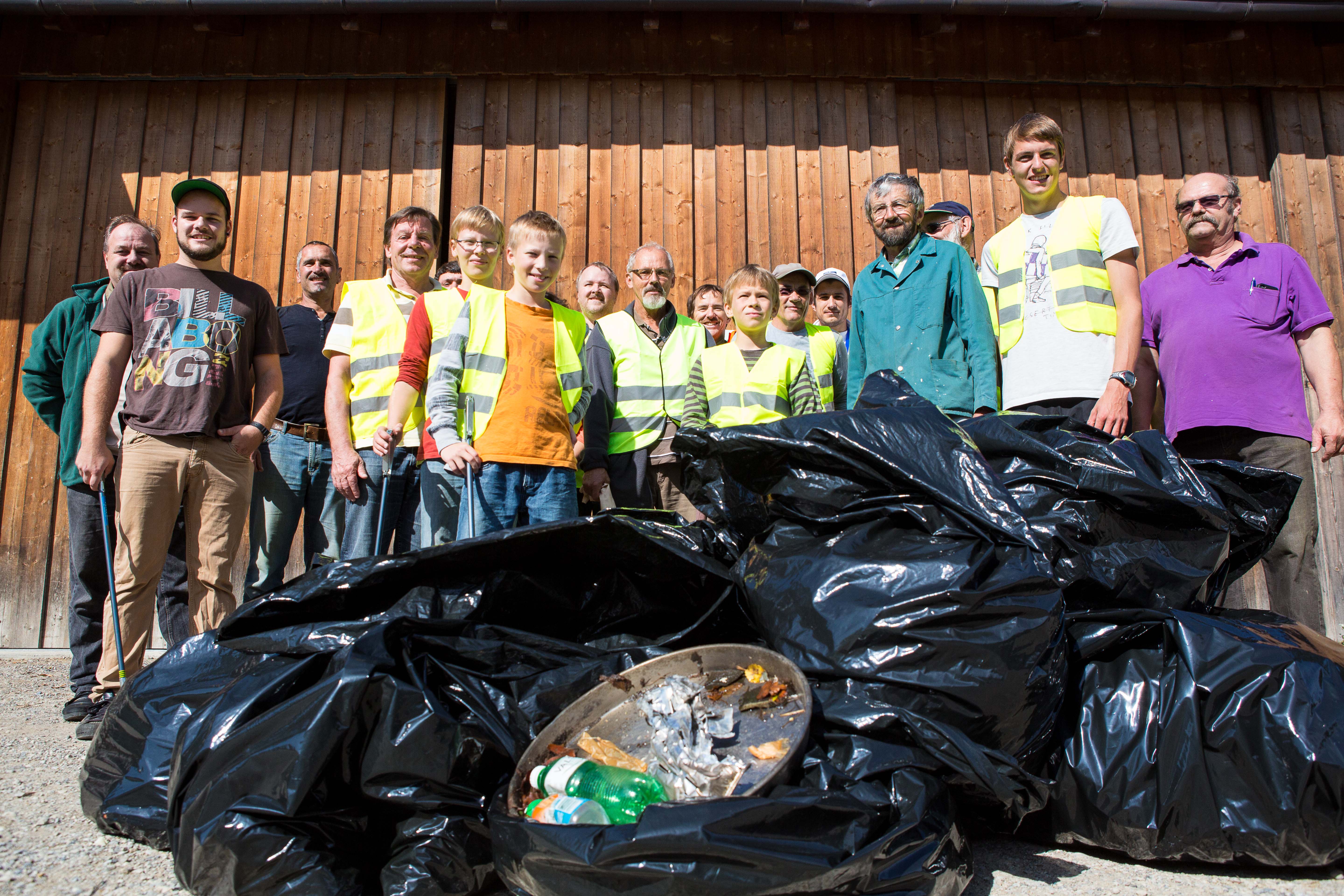 Photo 06: Grand butin à Döttingen: en compagnie du champion du monde de course d'orientation Matthias Kyburz (deuxième à droite), la commune a libéré les forêts des déchets sauvages.