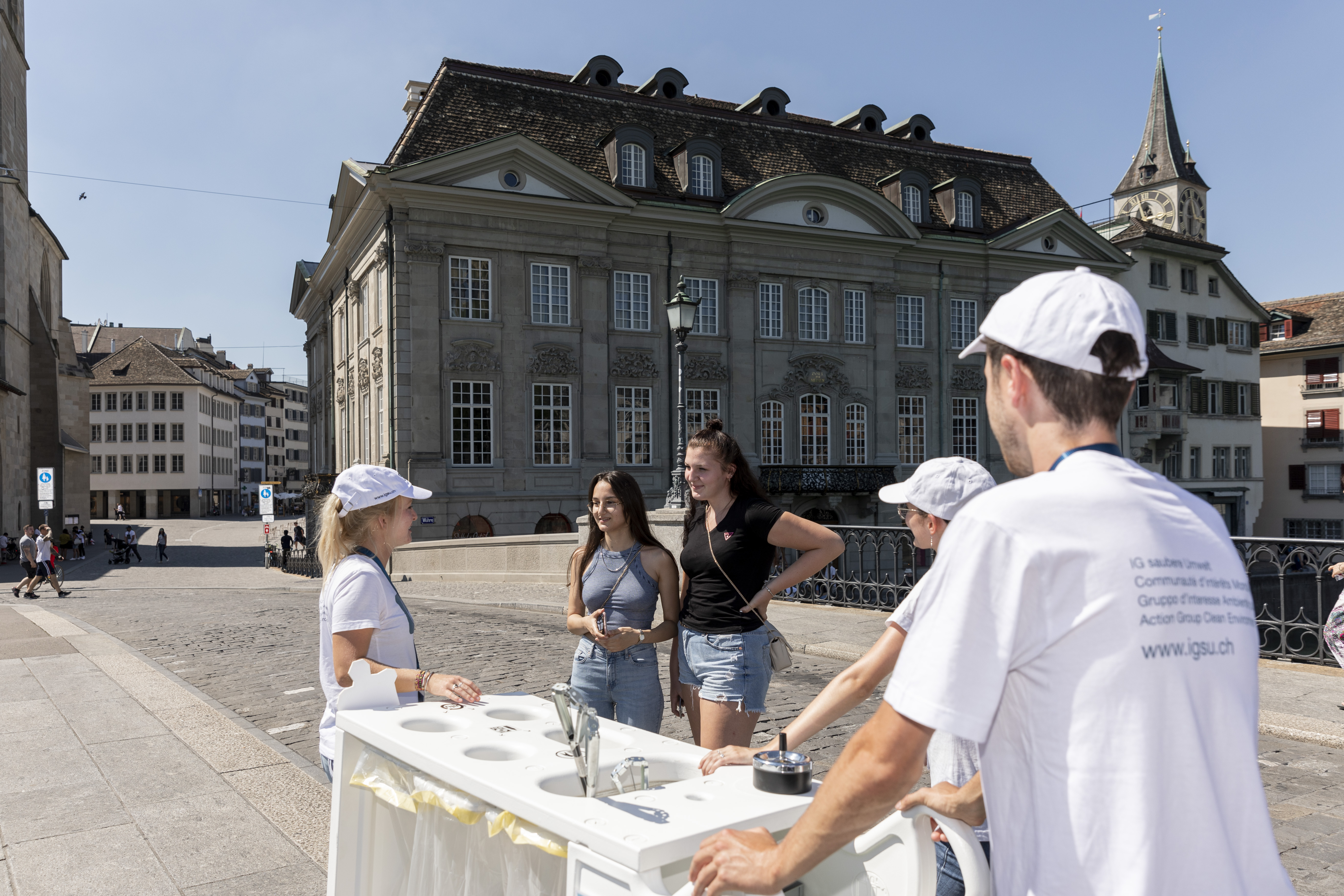 I team degli ambasciatori IGSU rappresentano una delle misure più stagionate e consolidate di IGSU: dal 2007, ogni anno da aprile a settembre, si recano in più di 50 città e comuni svizzeri coinvolgendo i passanti in colloqui sul littering e sul riciclaggio. Gli ambasciatori svolgono il loro lavoro di sensibilizzazione anche nelle regioni di montagna in estate, autunno e inverno e incoraggiano i turisti, gli escursionisti e gli amanti degli sport invernali a smaltire correttamente i rifiuti. Un altro punto degno di nota è l’impegno nelle scuole: i team degli ambasciatori sensibilizzano le allieve e gli allievi di tutte le età sulla problematica di questo malcostume servendosi di workshop come pure di azioni mirate durante le pause e operazioni di pulizia.