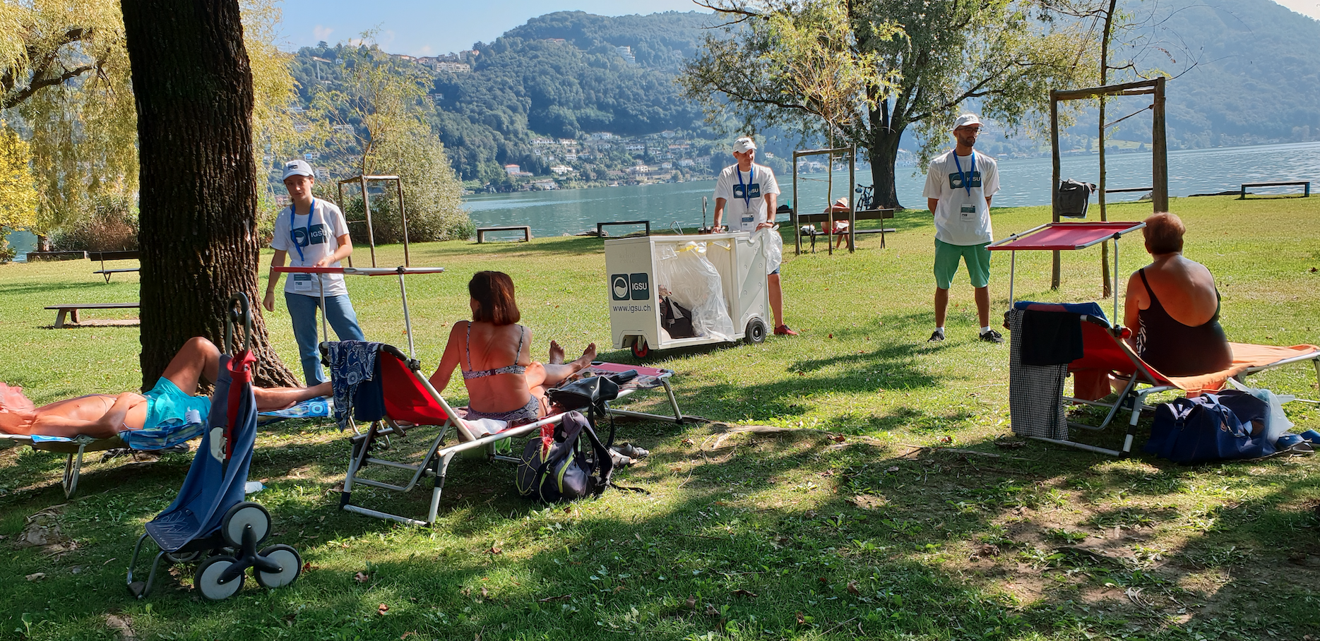 Negli ultimi tempi, nelle città e nelle aree ricreative si osserva uno scenario insolito: un quadro non propriamente tipico della Svizzera, con cumuli d’imballaggi per il cibo e per le bevande abbandonati nei vicoli dei centri storici, lungo le rive dei laghi e nelle radure. Durante la pandemia il littering è aumentato: forse per la frustrazione, per la noia oppure per semplice disattenzione. Per tale ragione, le misure di sensibilizzazione promosse dai team degli ambasciatori del Gruppo d’interesse per un ambiente pulito (IGSU) sono ancora più importanti. Sabato scorso, 17 luglio 2021, muniti dei loro speciali veicoli per il riciclaggio, hanno percorso il parco in riva al lago, il lido, i campeggi e le strade di Agno per sensibilizzare i passanti sulla problematica del littering.